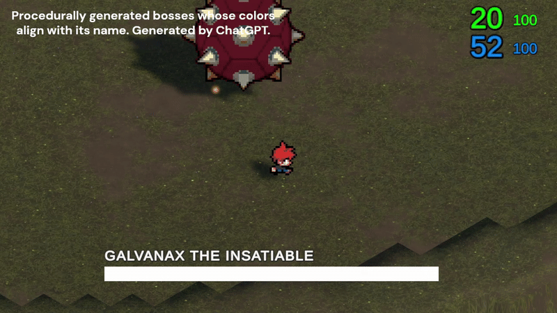 The Bosses in Bossborne are the highlight of the game. ChatGPT generates The bosses with their own attributes, stats, titles, and appearance. The bosses have their own State Machines and animations. The name and title are generated randomly, and a color palette corresponding to the title is generated. A shader is used to apply the palette to the boss, resulting in a unique boss every time in name, appearance, and stats.