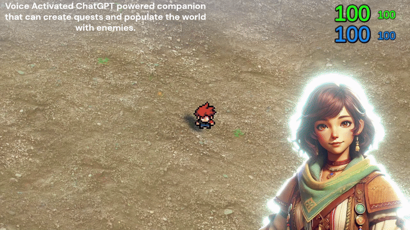 A key feature of the game was the interaction with the AI. An AI companion, "Questra," was built using. OpenAI's ChatGPT. Interacting with Questra through voice commands allows the player to get quests, among other things. Questra, through ChatGPT, generates quests with details like the location, the objective, the number of items required, and the enemies and their attributes. Components of a generated quest are then populated in the game world for the player to complete.
